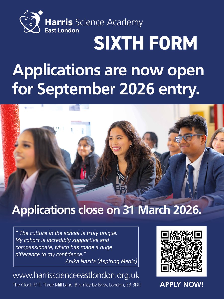 Want to know why so many families are choosing HSAEL? Learn about our values, our curriculum, and our students’ remarkable success. Explore our website and prospectus — and join our OUTSTANDING Academy. harrisscienceeastlondon.org.…